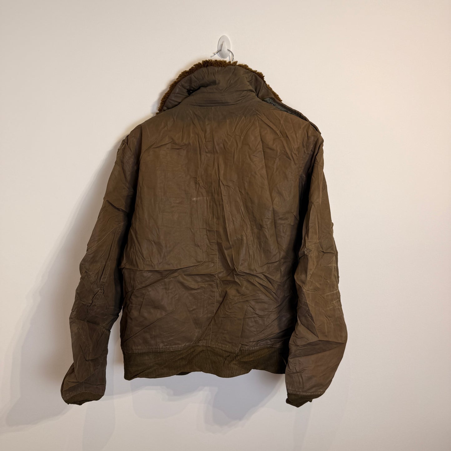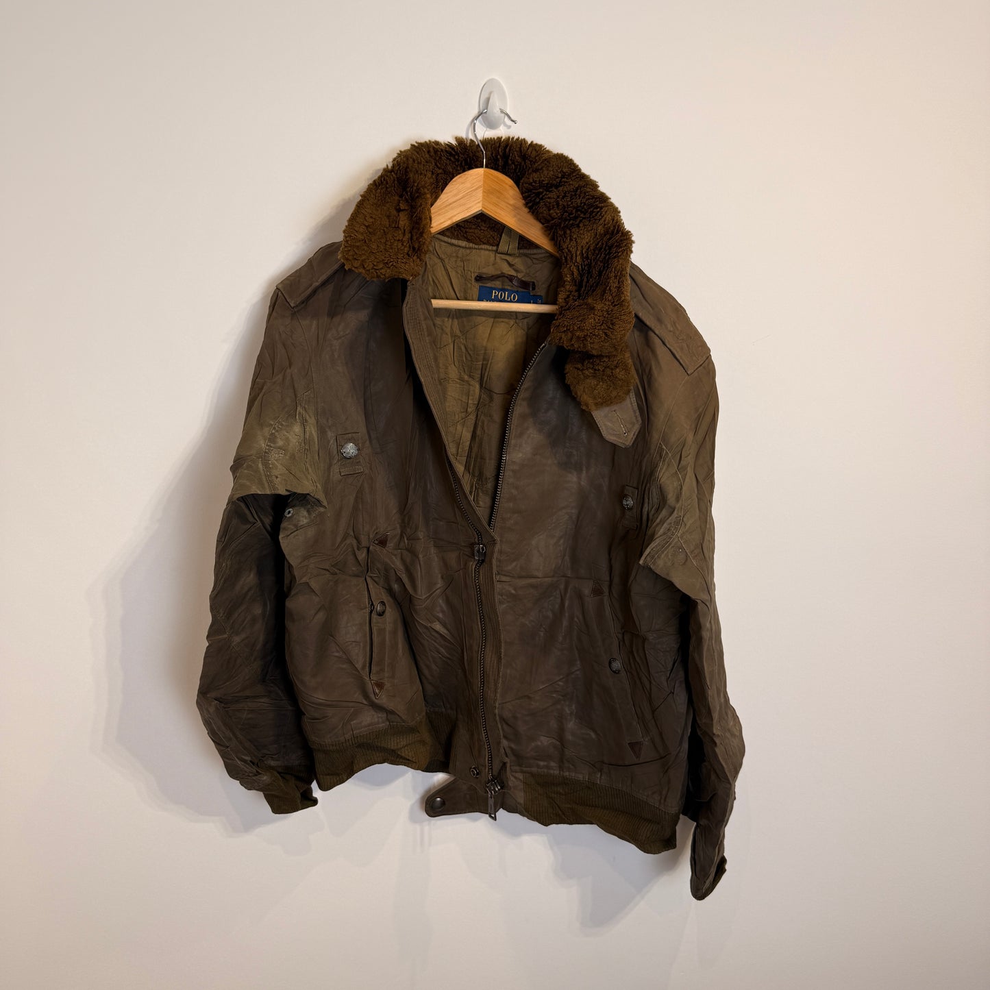 Add Polo Ralph Lauren Khaki Green Down Flight Bomber Jacket with Fur Collar to the cart