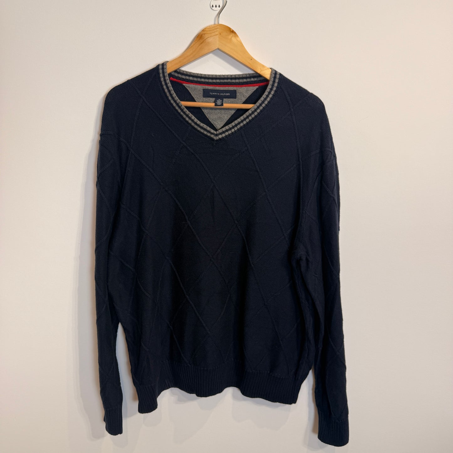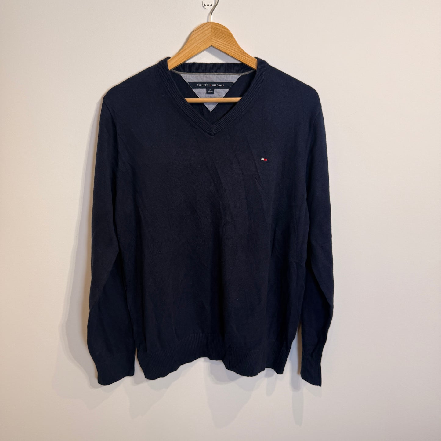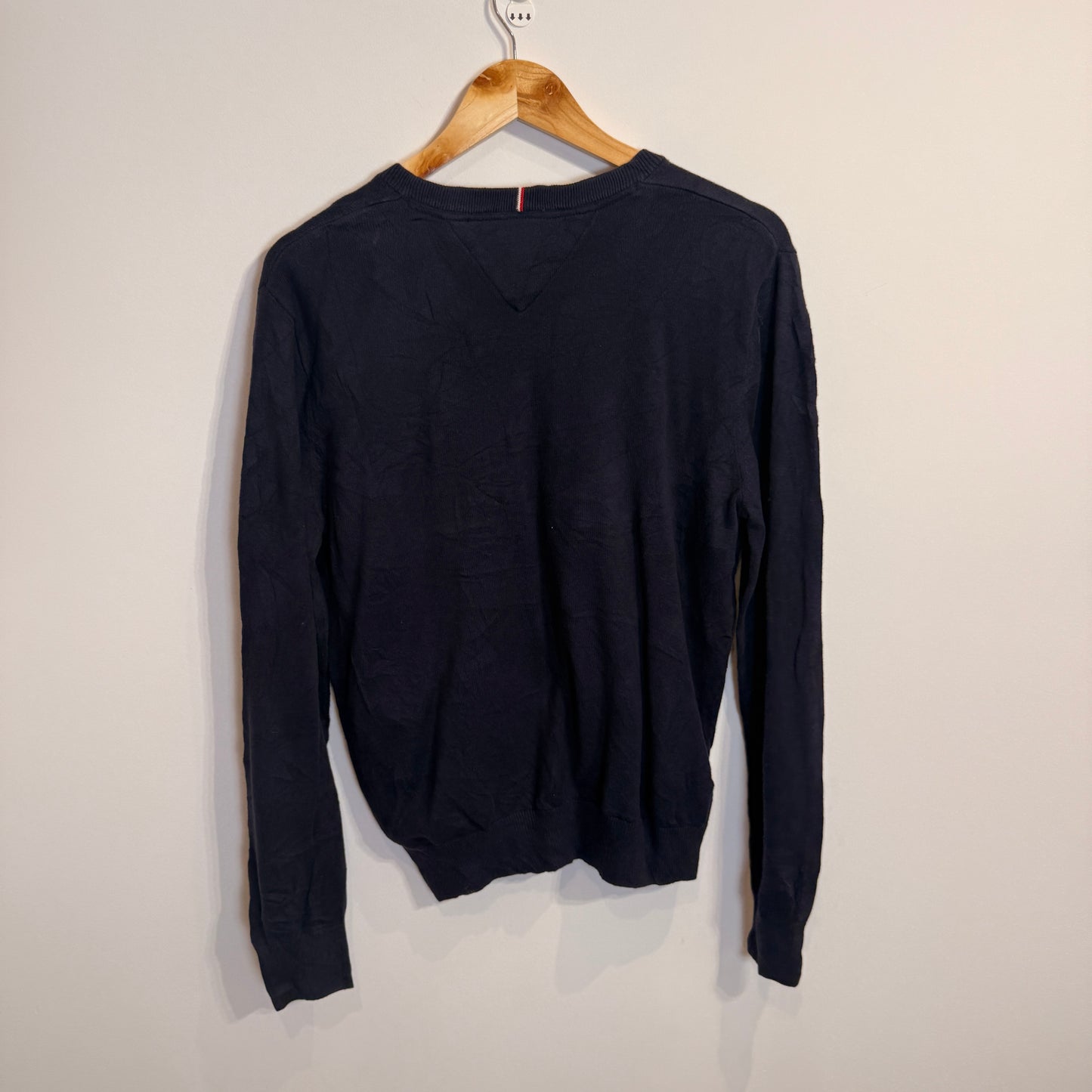 Add Tommy Hilfiger Navy Blue 100% Cotton V-Neck Jumper to the cart