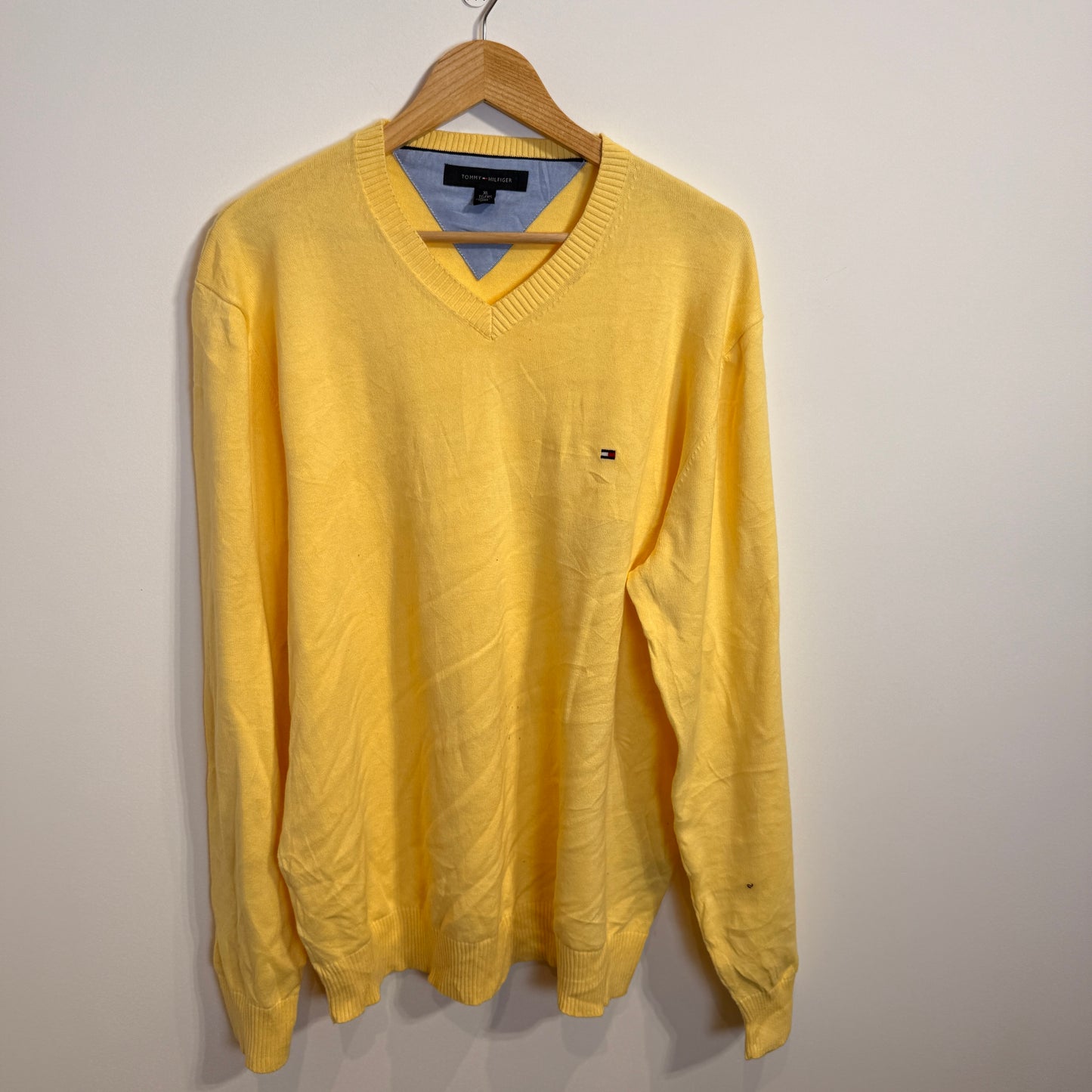 Add Tommy Hilfiger Yellow Cotton V-Neck Jumper to the cart