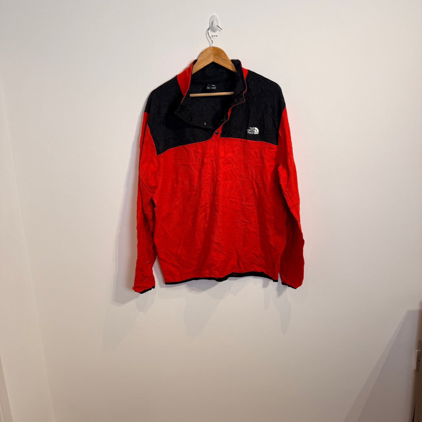 Add The North Face Men’s Red and Orange 1/4 Button-Up Fleece Pullover – P554 to the cart