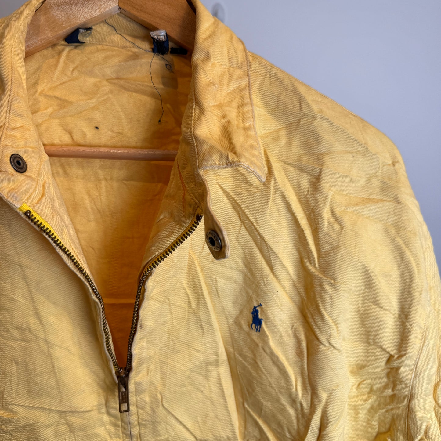Bright and bold, this Ralph Lauren Yellow Bomber Jacket adds a statement touch to casual styling. The classic bomber silhouette offers a comfortable fit with signature Ralph Lauren detailing, making it a standout piece for transitional weather. Ideal for pairing with jeans or chinos for a relaxed yet eye-catching look.