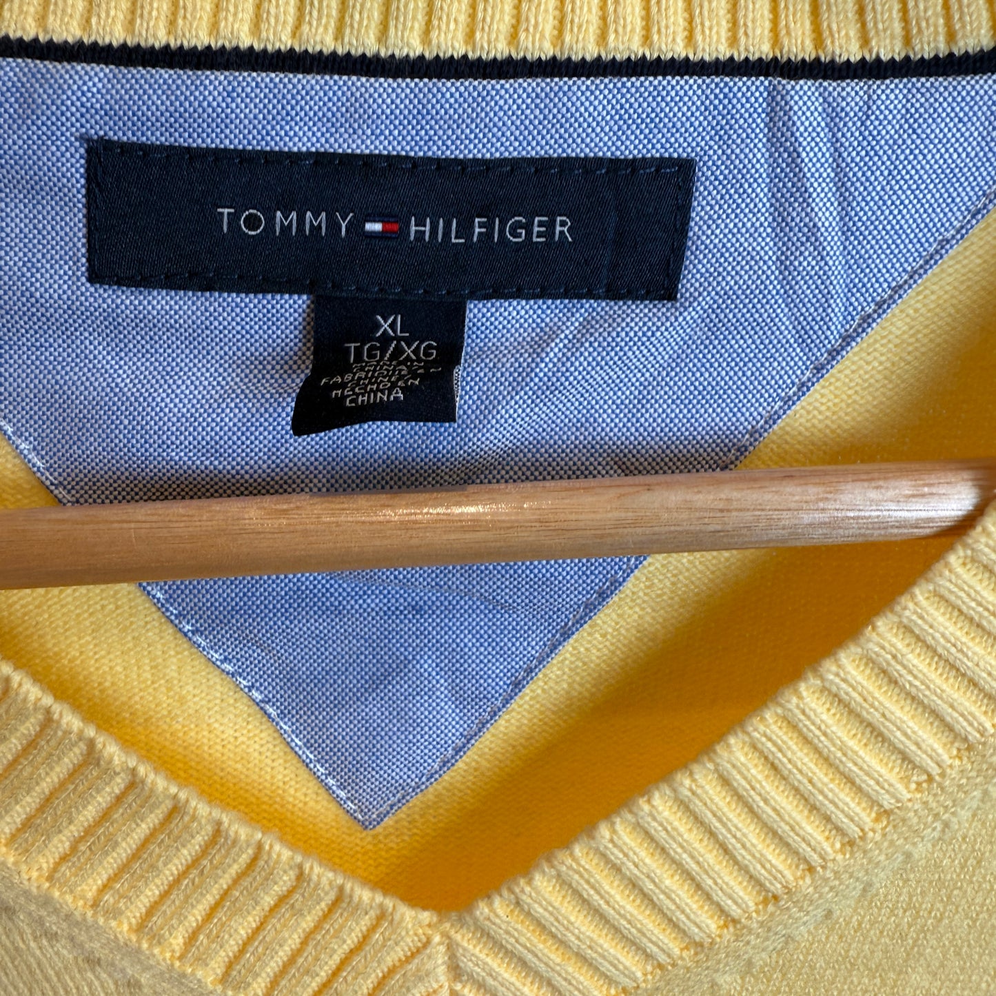 Bright and cheerful, this Tommy Hilfiger Yellow V-Neck Jumper brings a fresh pop of colour to your casual wardrobe. The soft cotton knit ensures comfort and breathability, while the simple design makes it easy to style for any occasion. A standout piece that combines vibrancy with Tommy Hilfiger’s signature classic appeal.