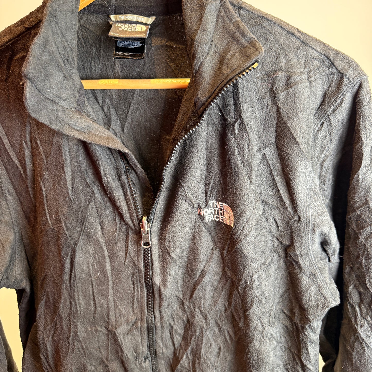 Color & Details: Black, soft fleece texture with full-zip front and classic North Face logo on chest