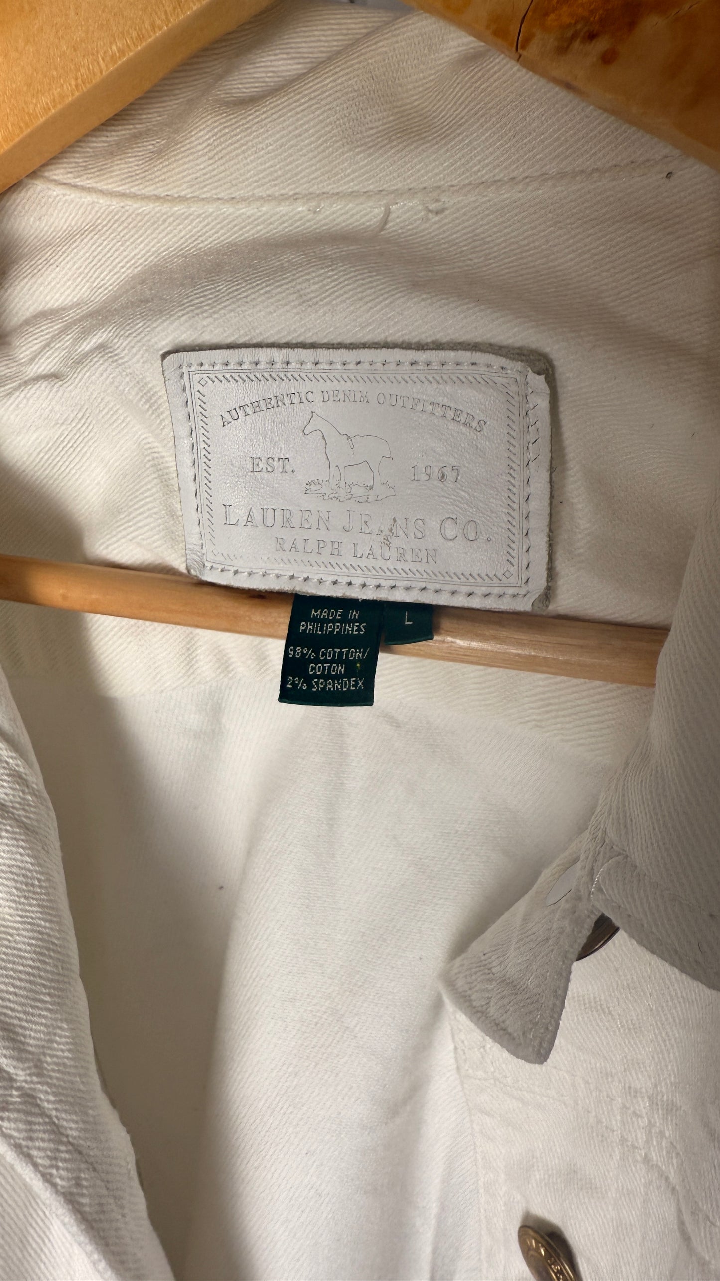 Elegant and versatile, this Ralph Lauren White Denim Jacket brings a fresh, refined update to a timeless classic. Its crisp tone and structured silhouette make it perfect for pairing with both casual and dressy outfits. A wardrobe essential that exudes effortless sophistication and enduring Ralph Lauren quality.