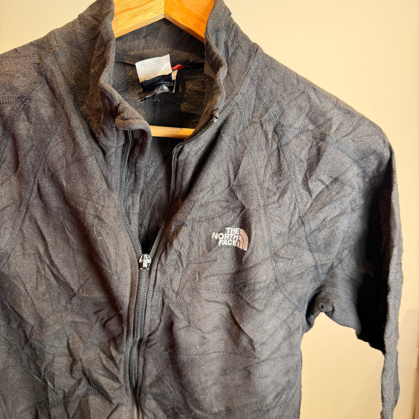 This North Face Women’s Black Fleece Jacket is a cozy essential for transitional weather. The plush fleece fabric offers lightweight warmth and comfort, while the simple, versatile design pairs easily with casual or outdoor outfits. Please note: the front zipper is damaged and may require repair or replacement.