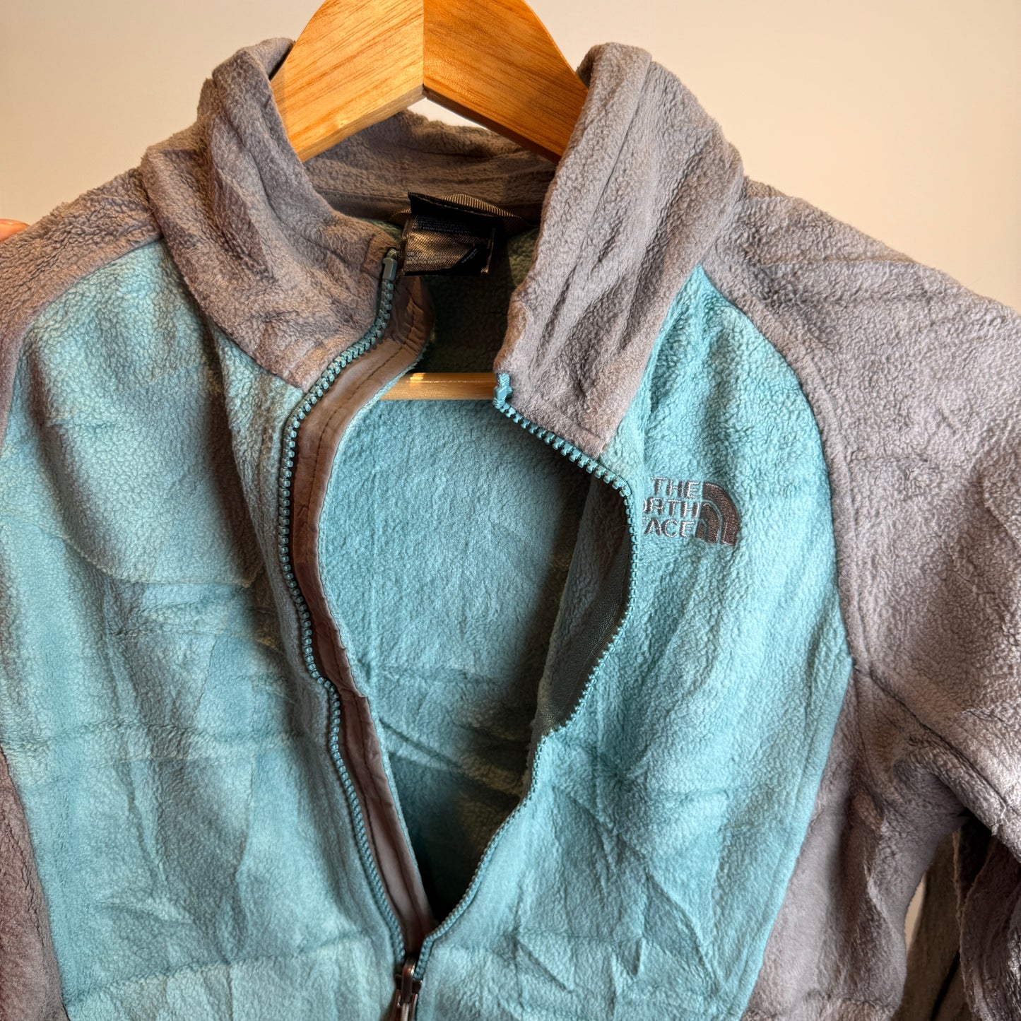 Stay warm in style with this North Face Women’s Fleece Jacket, designed for comfort and everyday wear. The lightweight fleece fabric provides cozy insulation without bulk, making it ideal for layering or wearing on its own. Finished with turquoise zipper accents, this jacket blends North Face performance with a modern, feminine touch perfect for outdoor adventures or casual outings.