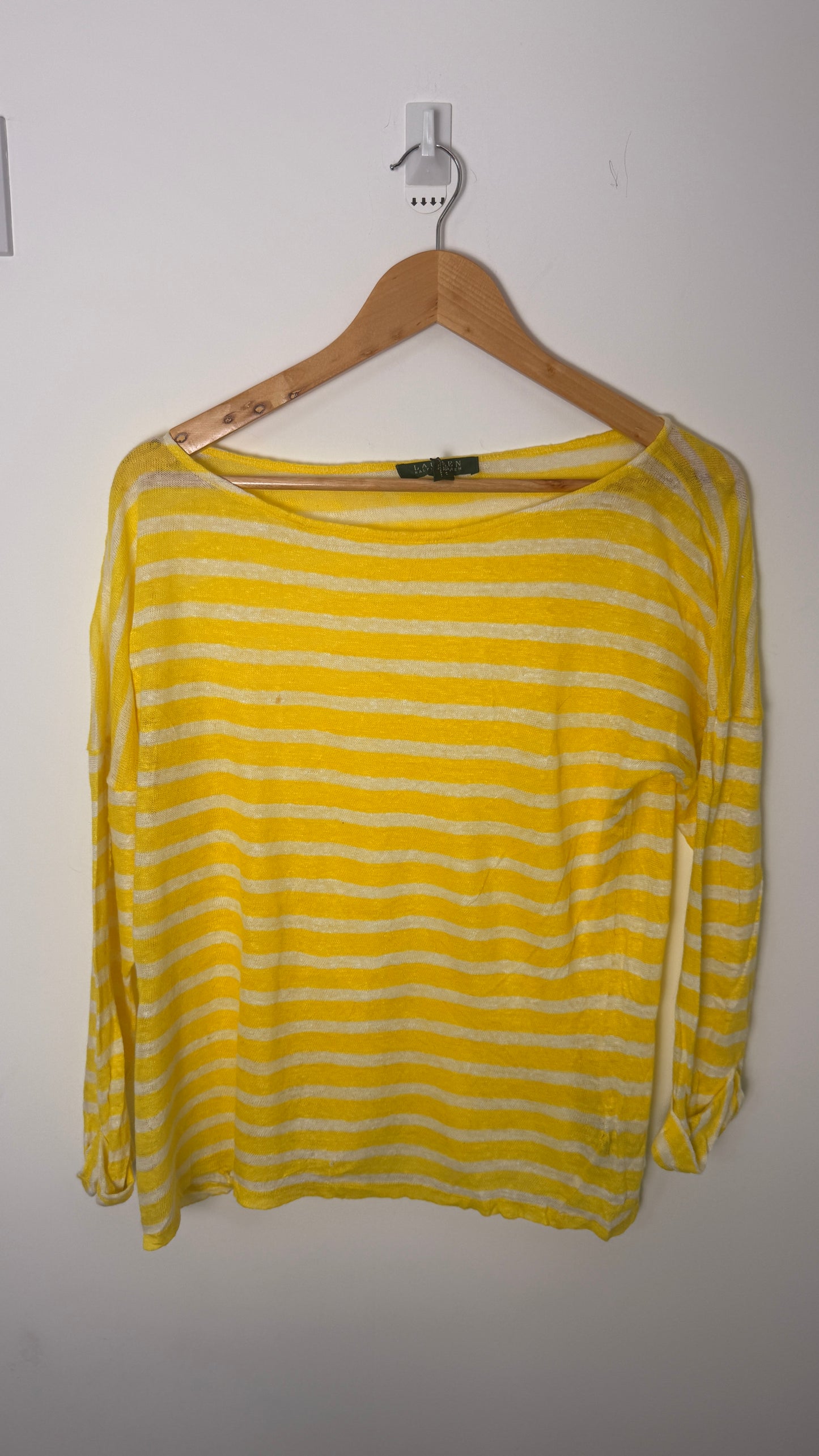 Add Lauren by Ralph Lauren Full Sleeve Linen Top - Yellow White Stripes to the cart