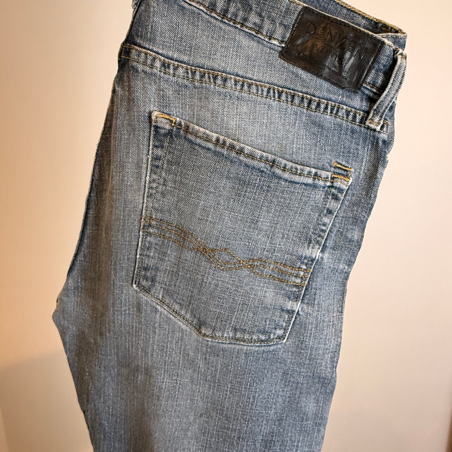 Color & Details: Mid Blue; classic Levi’s five-pocket design with contrast stitching and red tab branding, featuring a clean straight-leg silhouette