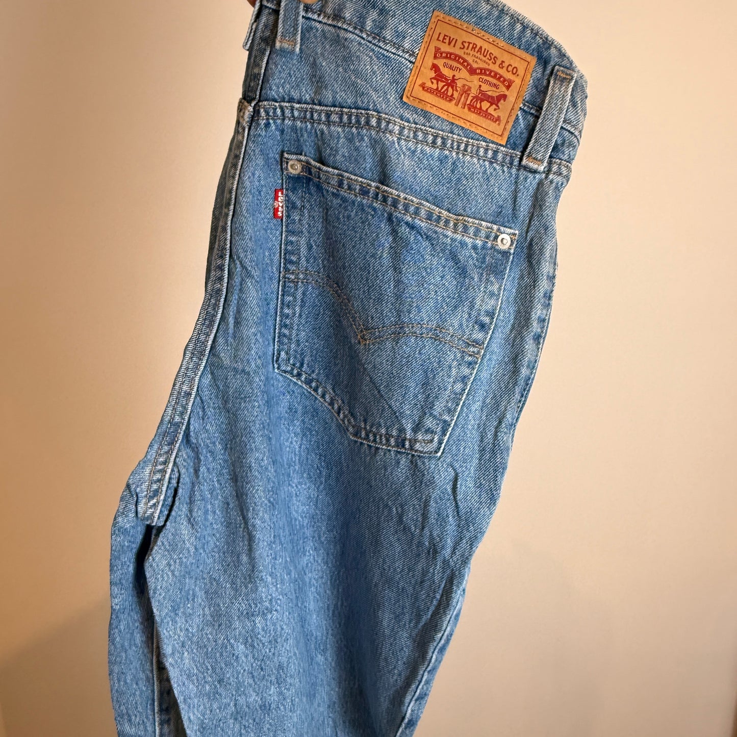 Color & Details: Light Blue; classic Levi’s red tab branding, five-pocket design, and soft vintage-style fading for a retro-inspired look