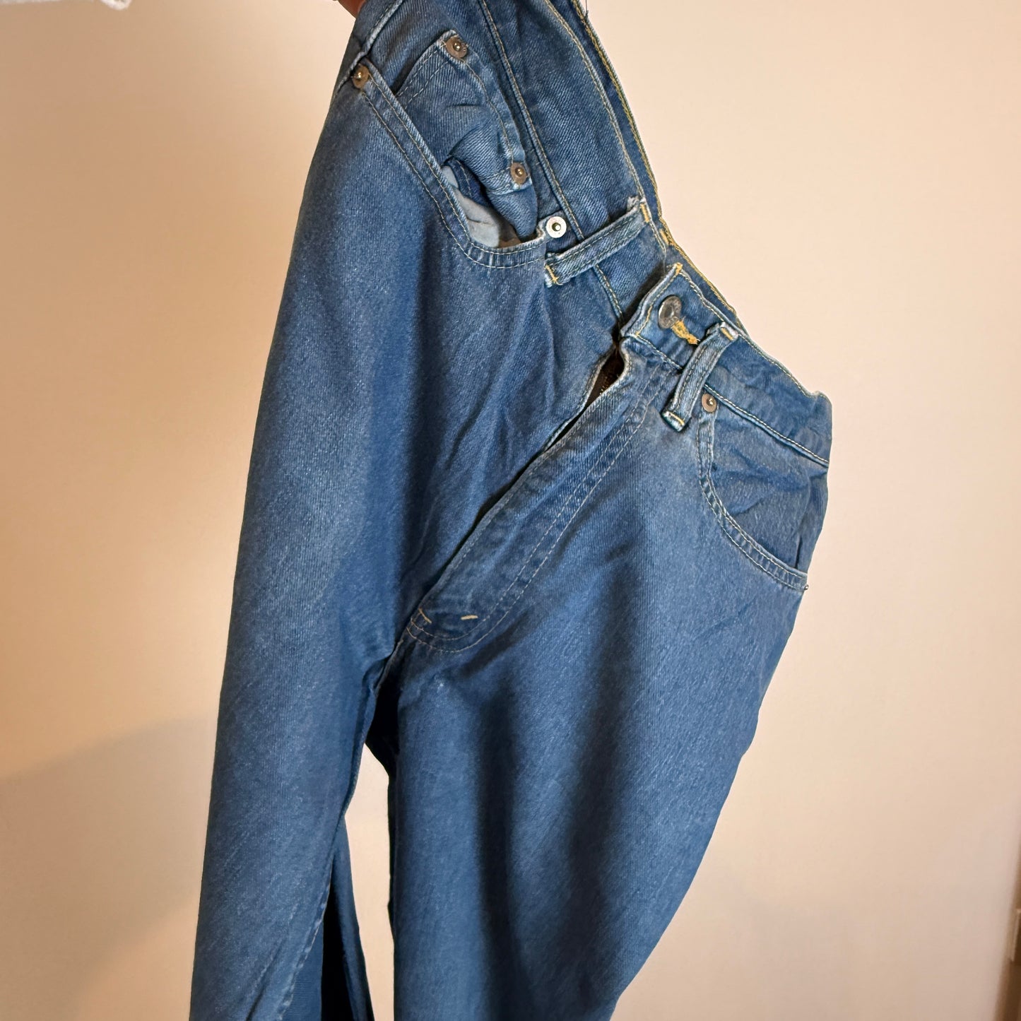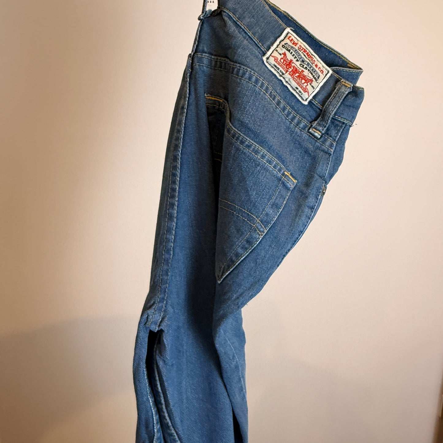 Color & Details: Mid Blue; soft denim texture with gentle fading, classic Levi’s stitching, and a flattering high-rise silhouette