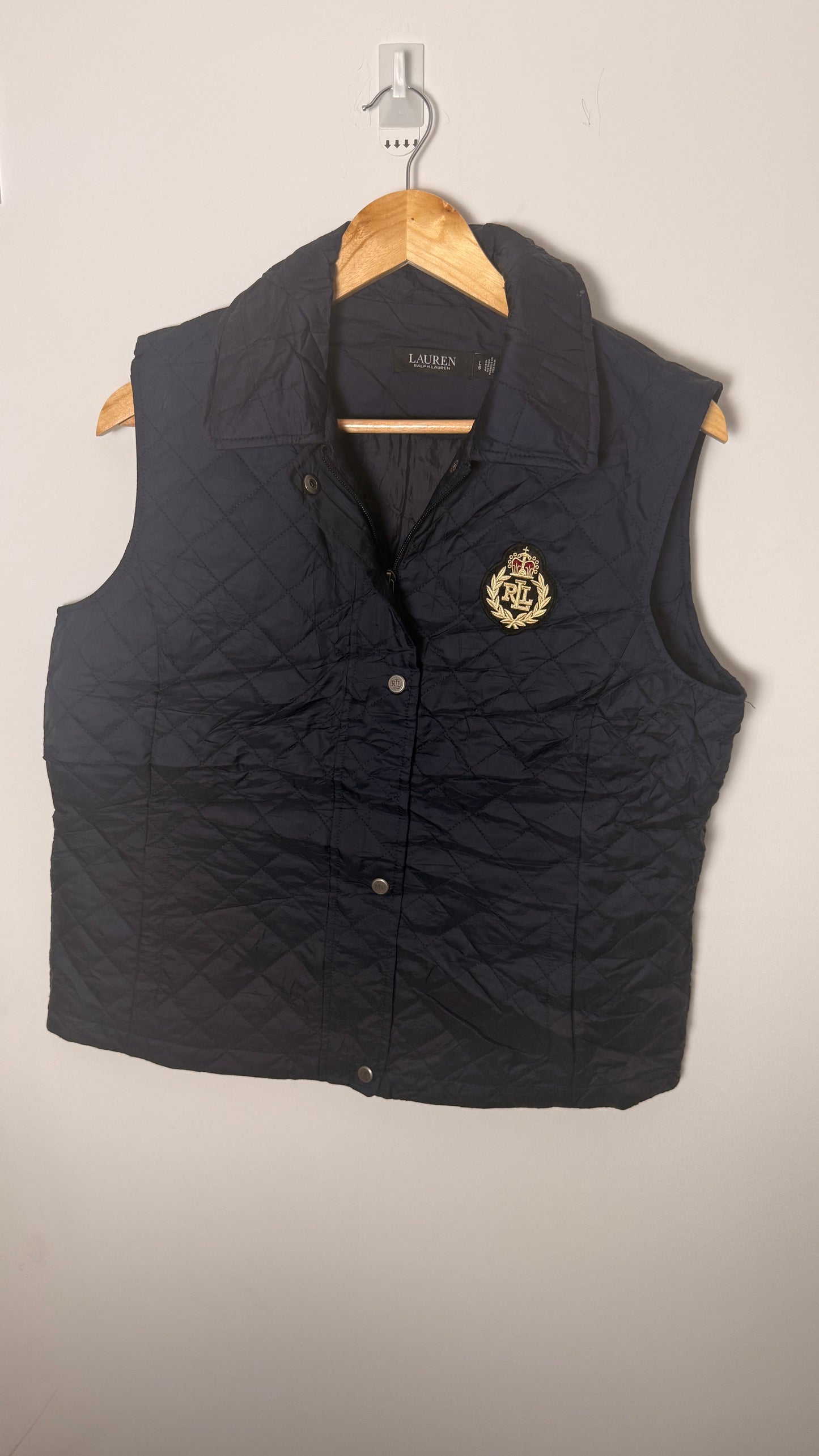 Refined and versatile, this Lauren by Ralph Lauren Black Quilted Vest features the brand’s signature embroidered logo for a touch of classic elegance. The quilted design provides lightweight warmth without bulk, making it perfect for layering over knits or shirts. A staple piece that blends timeless Ralph Lauren style with everyday practicality.