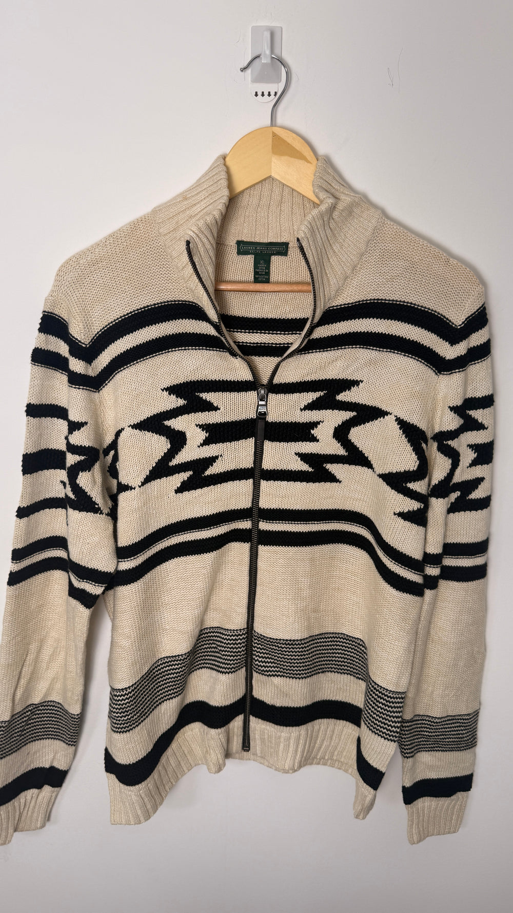 Stand out with this Lauren by Ralph Lauren Cream Zip-Up Jumper featuring a unique abstract design. Crafted with precision and comfort in mind, it combines elegant detailing with a modern aesthetic. The soft knit fabric offers warmth and style, while the zip-up front adds a practical touch. Perfect for layering or wearing solo, this piece embodies effortless sophistication with a contemporary edge.
