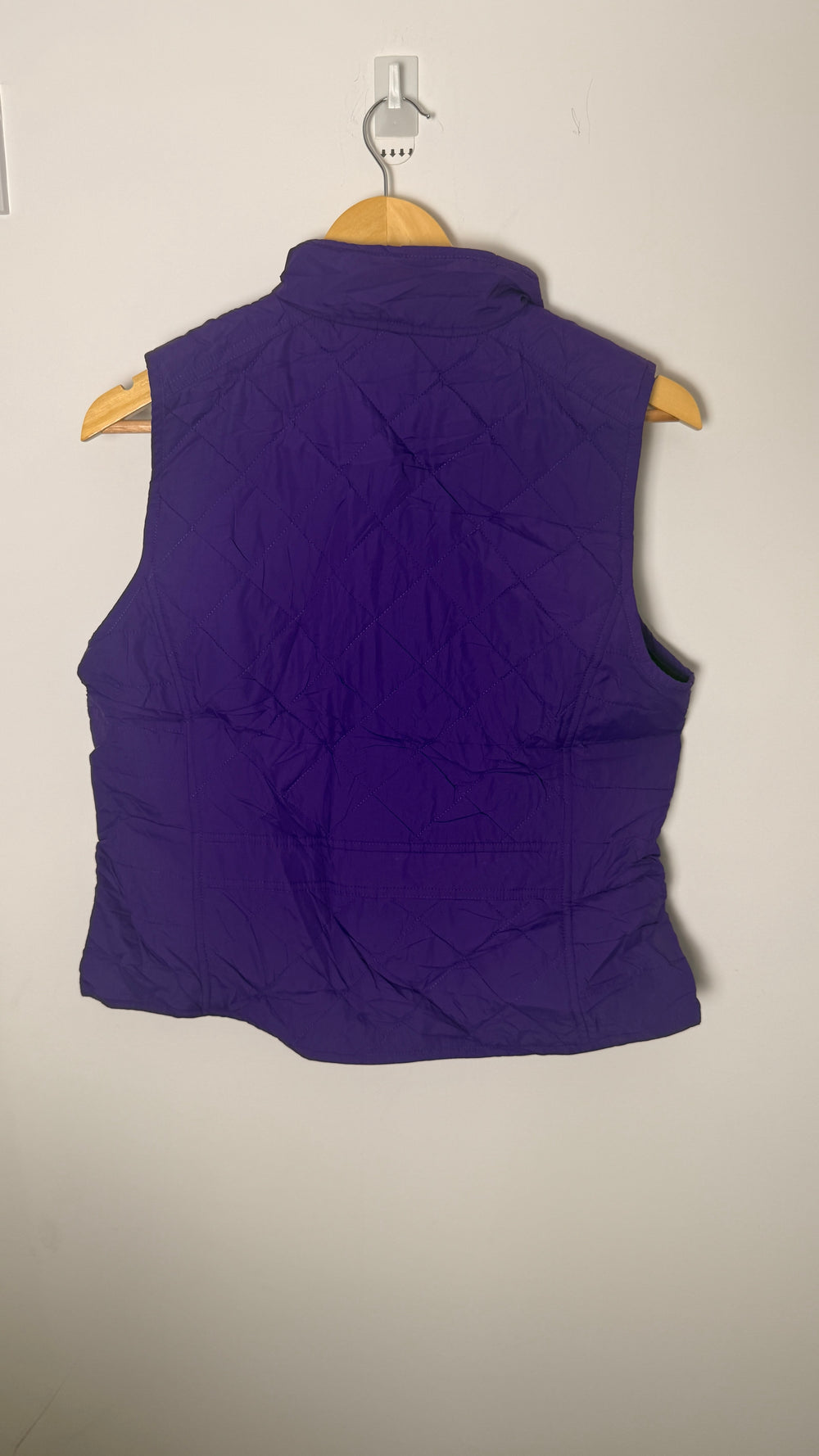 Bright and practical, this Lauren by Ralph Lauren Purple Quilted Vest adds a pop of colour to your outerwear collection. The lightweight quilted design offers warmth without bulk, making it perfect for layering over shirts or sweaters. Stylish and functional, it’s an ideal piece for transitional weather and casual chic looks.