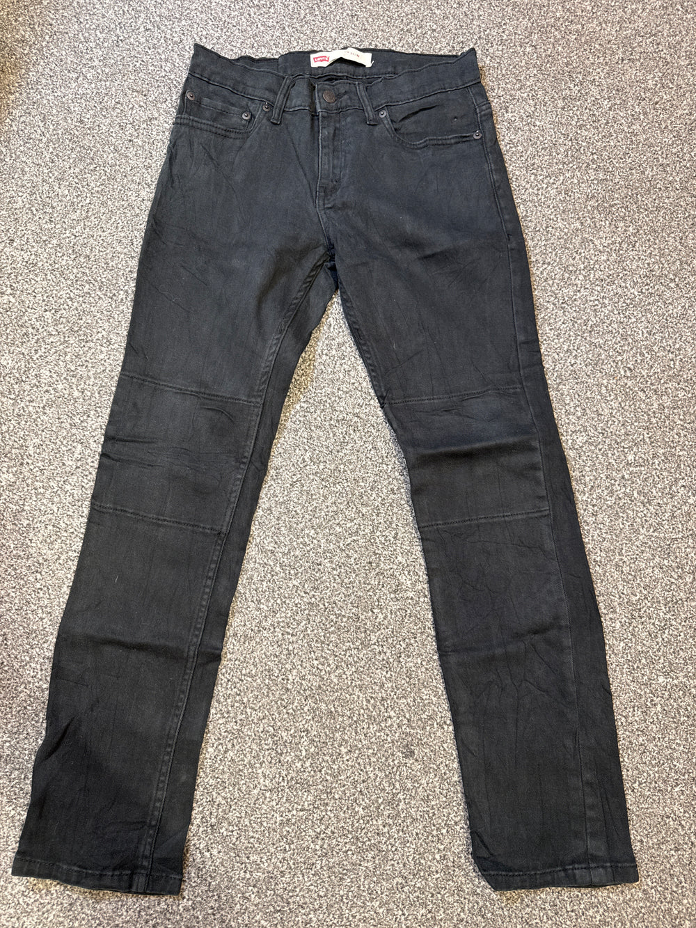 Color & Details: Jet Black; features classic Levi’s red tab branding, five-pocket design, and tonal stitching for a sleek finish