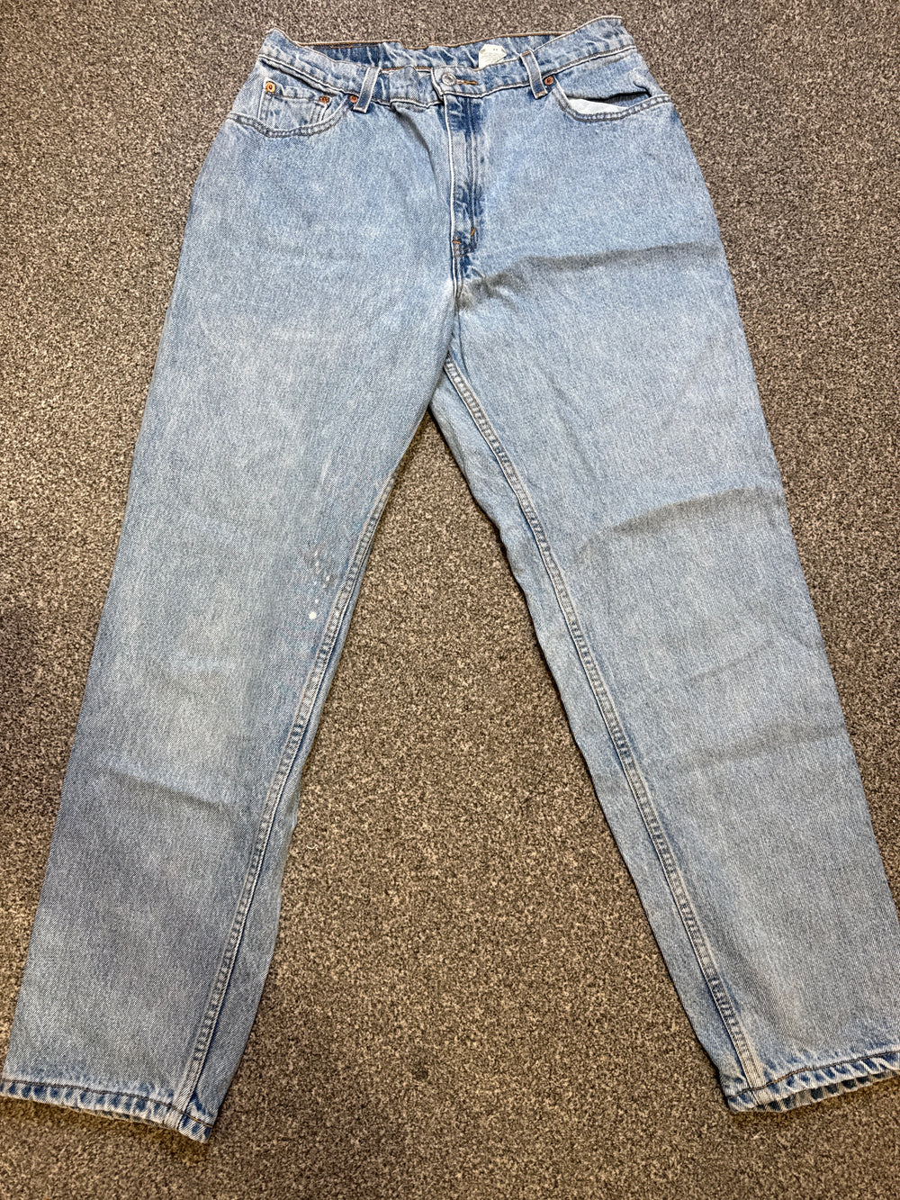 Color & Details: Mid Blue; classic Levi’s five-pocket styling with red tab branding and gentle vintage fade