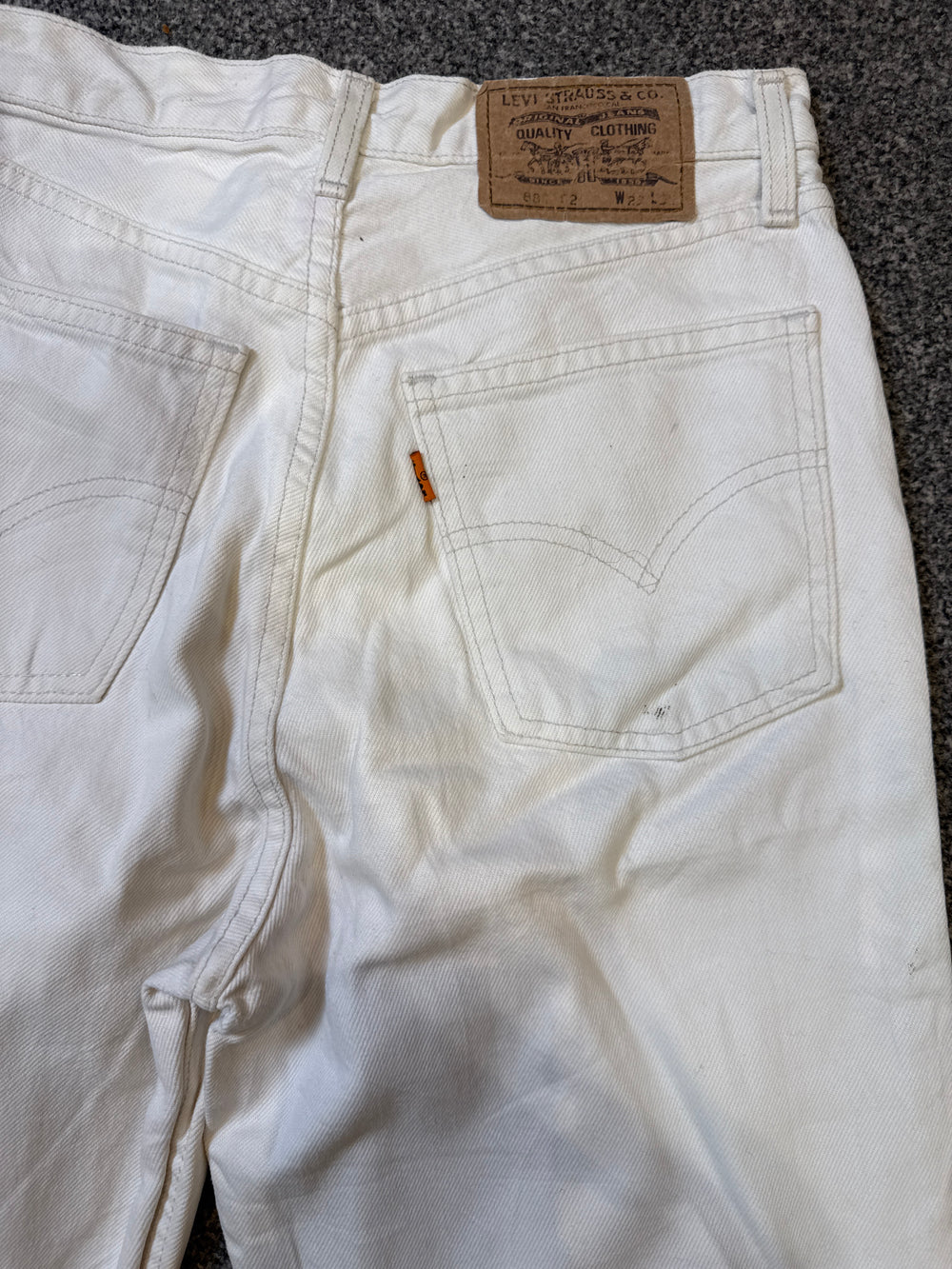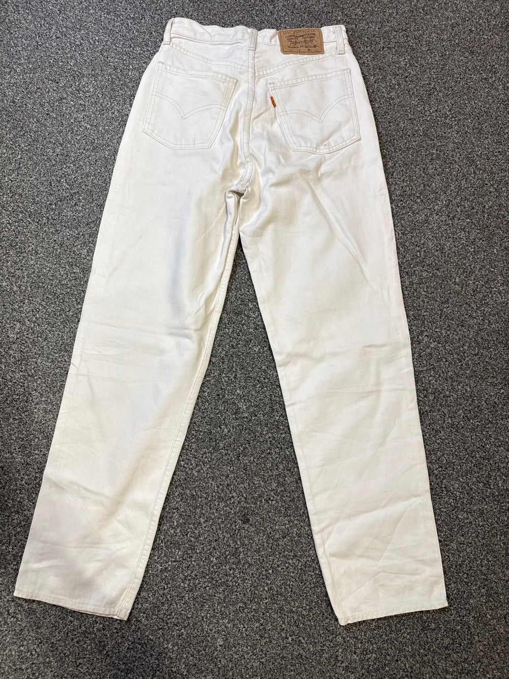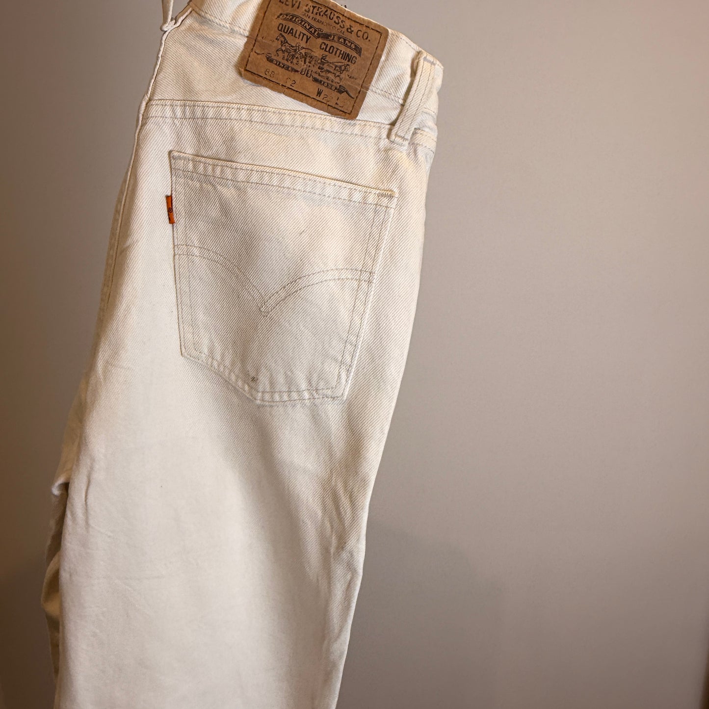These Levi’s Women’s 881 Vintage Orange Tab White Jeans are a true collector’s piece from the sought-after Orange Tab era. Featuring a flattering high-waisted fit and durable cotton denim construction, they embody authentic Levi’s heritage with a clean, timeless look perfect for both vintage enthusiasts and modern minimalists.