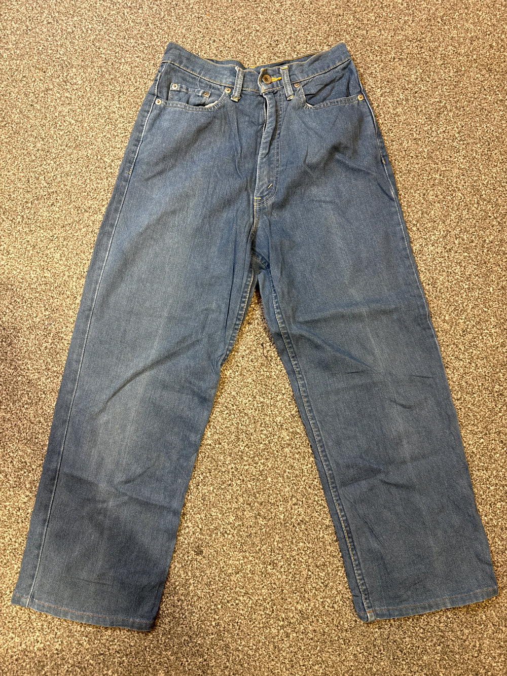 Color & Details: Mid Blue; soft denim texture with gentle fading, classic Levi’s stitching, and a flattering high-rise silhouette