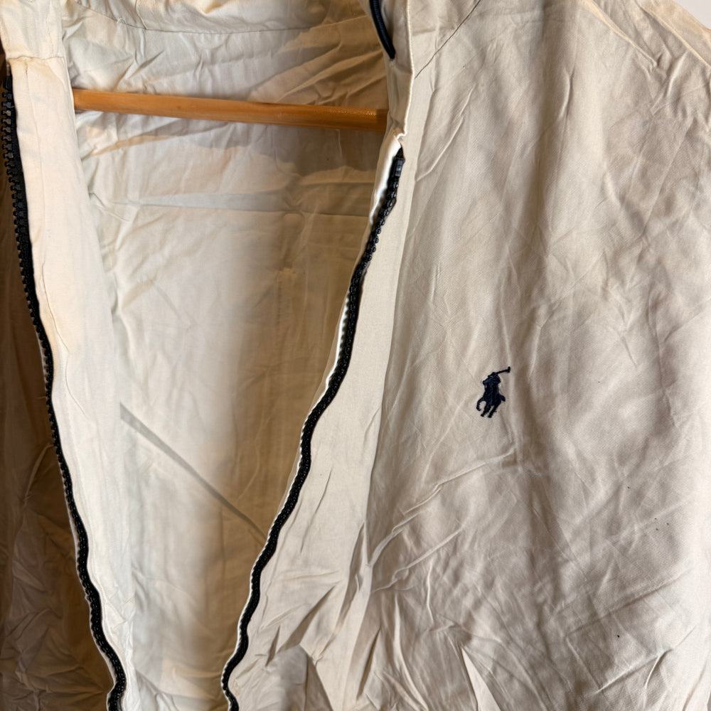 Color & Details: Beige exterior with reversible interior design; embroidered Polo logo on chest; includes adjustable drawstring hood and front pockets for utility and comfort