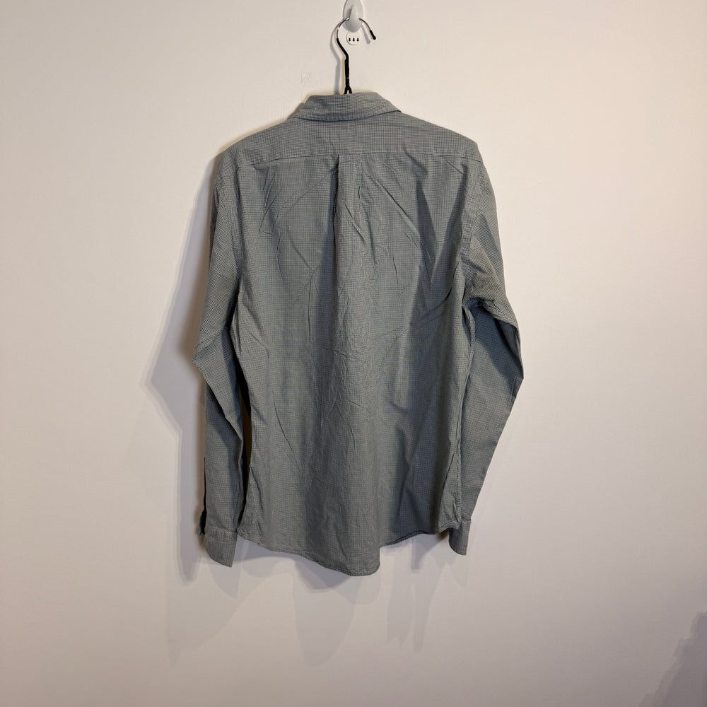 Color & Details: Gray with a fine grid pattern; embroidered Ralph Lauren pony logo on the chest; button-down collar and single chest pocket