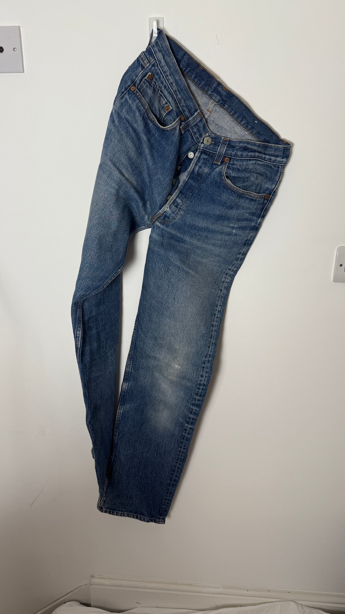Discover the heritage of American denim with these Rare Vintage Levi's 501 XX jeans, crafted in the USA. Featuring authentic construction and a distinctive faded blue wash, these jeans exemplify classic style and durability. Their iconic straight fit and robust denim make them a timeless addition for collectors and enthusiasts seeking genuine vintage quality.
