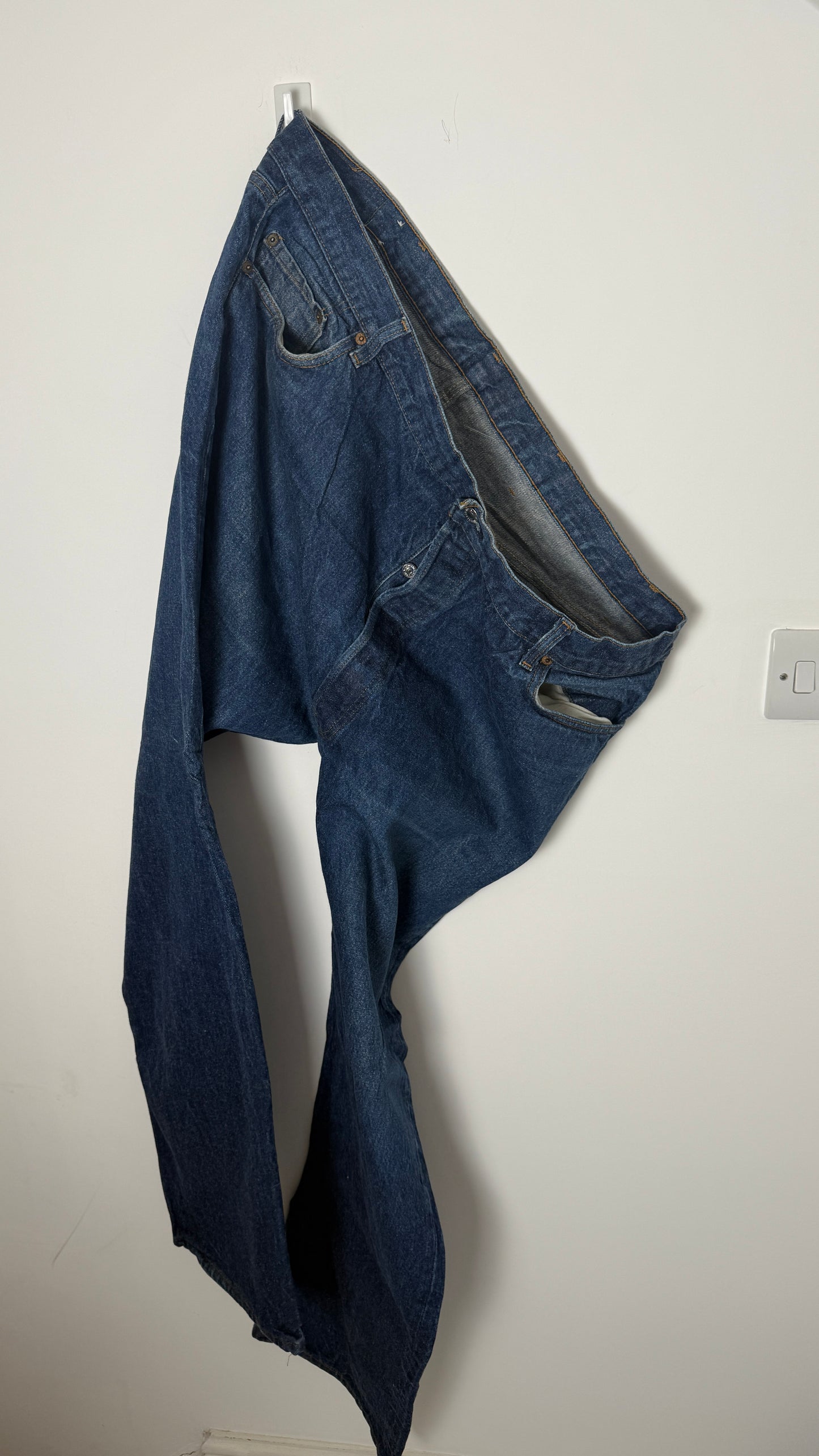 These Rare Vintage Levi's 501 XX jeans are an iconic piece of American heritage, crafted in the USA from durable blue denim. Known for their classic straight-leg fit and button fly, they showcase authentic vintage detailing prized by collectors and enthusiasts alike. Their sturdy construction ensures lasting wear, while the distinctive fading and wear patterns highlight the unique character developed over time. Perfect for those who appreciate genuine vintage denim with a rich history and timeless style.
