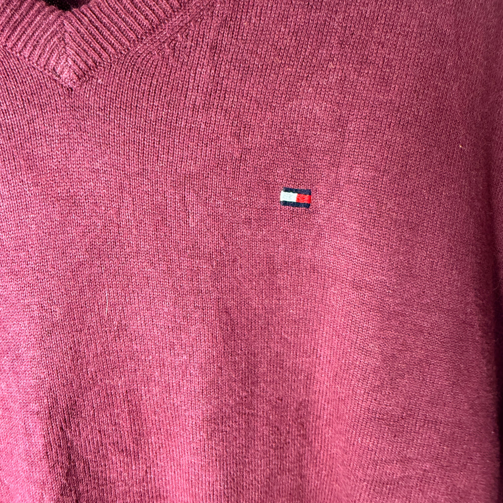 Sophisticated and timeless, this Tommy Hilfiger Burgundy V-Neck Jumper adds a touch of elegance to any outfit. The rich tone and fine knit construction make it perfect for layering over shirts or pairing with jeans for a smart-casual look. A classic piece that captures the essence of Tommy Hilfiger’s refined style.