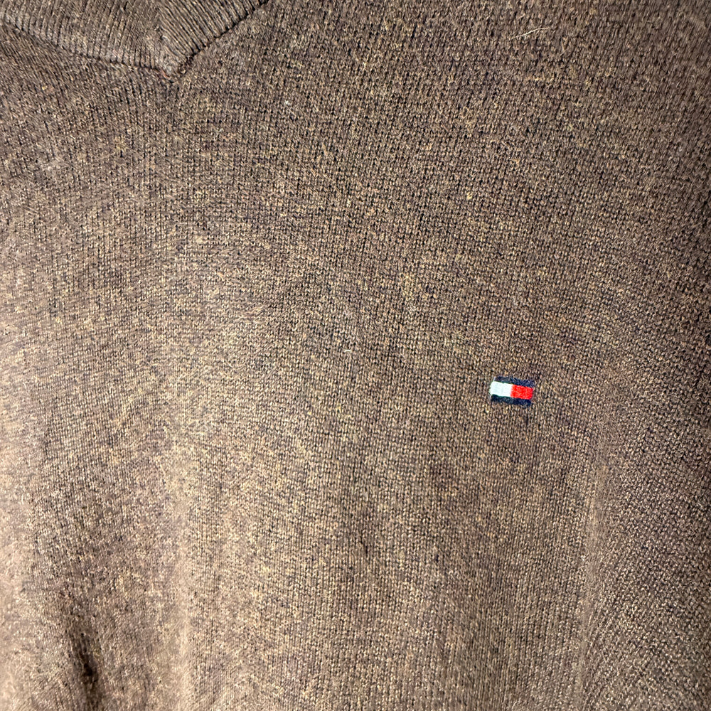 Rich and sophisticated, this Tommy Hilfiger Chocolate Brown V-Neck Jumper adds depth and warmth to any outfit. The soft cotton knit ensures comfort and versatility, making it ideal for layering or wearing on its own. A timeless wardrobe staple that embodies Tommy Hilfiger’s effortless, preppy charm.