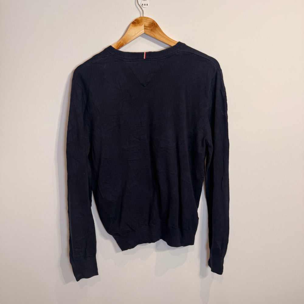 Classic and effortlessly stylish, this Tommy Hilfiger Navy Blue Cotton Jumper is a wardrobe essential for every season. The simple design and soft cotton knit offer timeless appeal and everyday comfort. Perfect for layering or standalone wear, it reflects the clean, preppy aesthetic that defines Tommy Hilfiger.