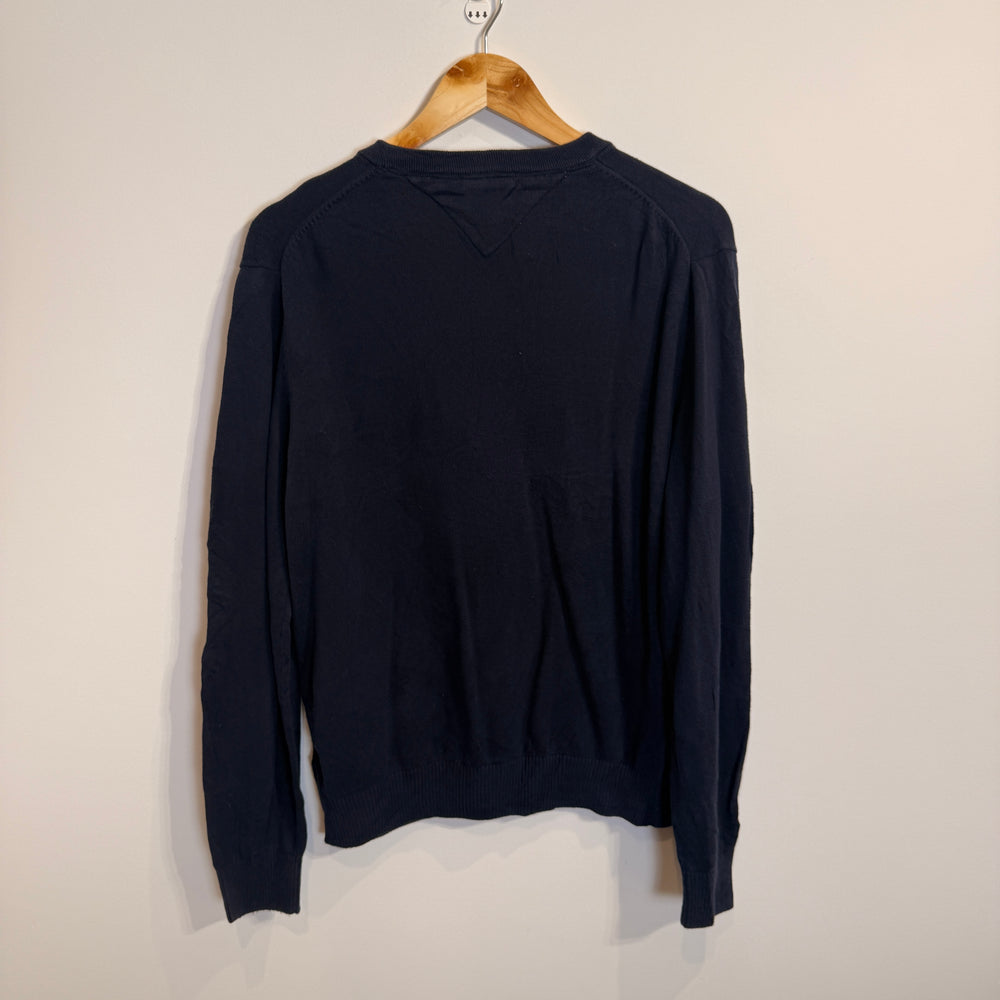 Classic and versatile, this Tommy Hilfiger Navy Blue Cotton Jumper is a timeless essential that complements any wardrobe. The soft knit construction provides comfort and breathability, while the clean design ensures effortless style for both casual and semi-formal looks. A true reflection of Tommy Hilfiger’s polished, everyday sophistication.