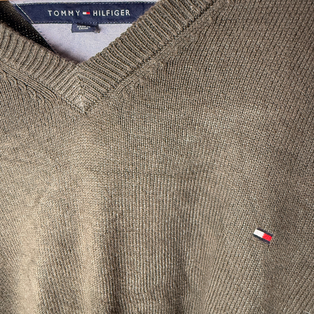 Stylish and understated, this Tommy Hilfiger Olive Green V-Neck Jumper adds a refined earthy tone to your wardrobe. The soft knit construction ensures comfort and versatility, making it ideal for layering or standalone wear. A timeless piece that perfectly balances casual ease with Tommy Hilfiger’s classic sophistication.