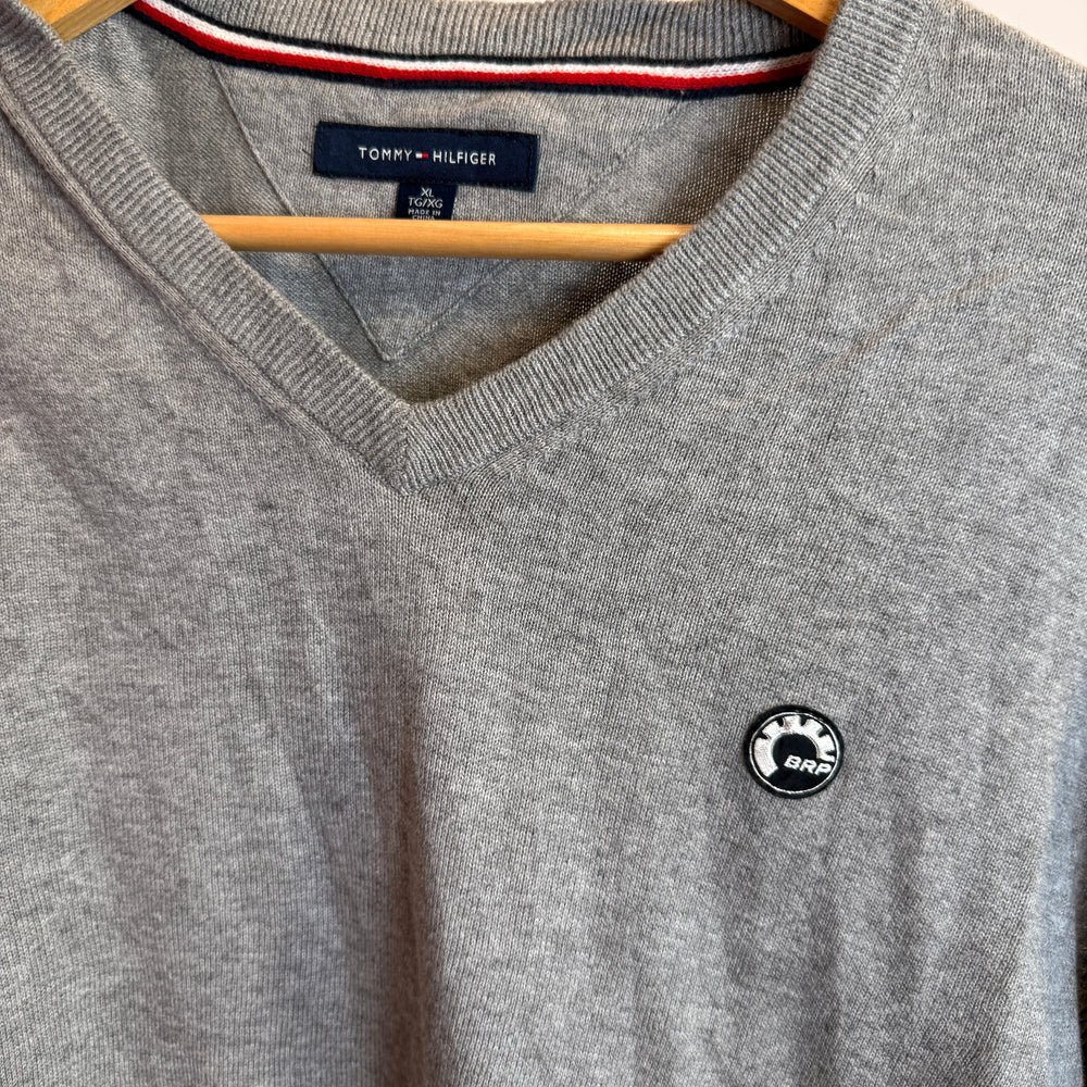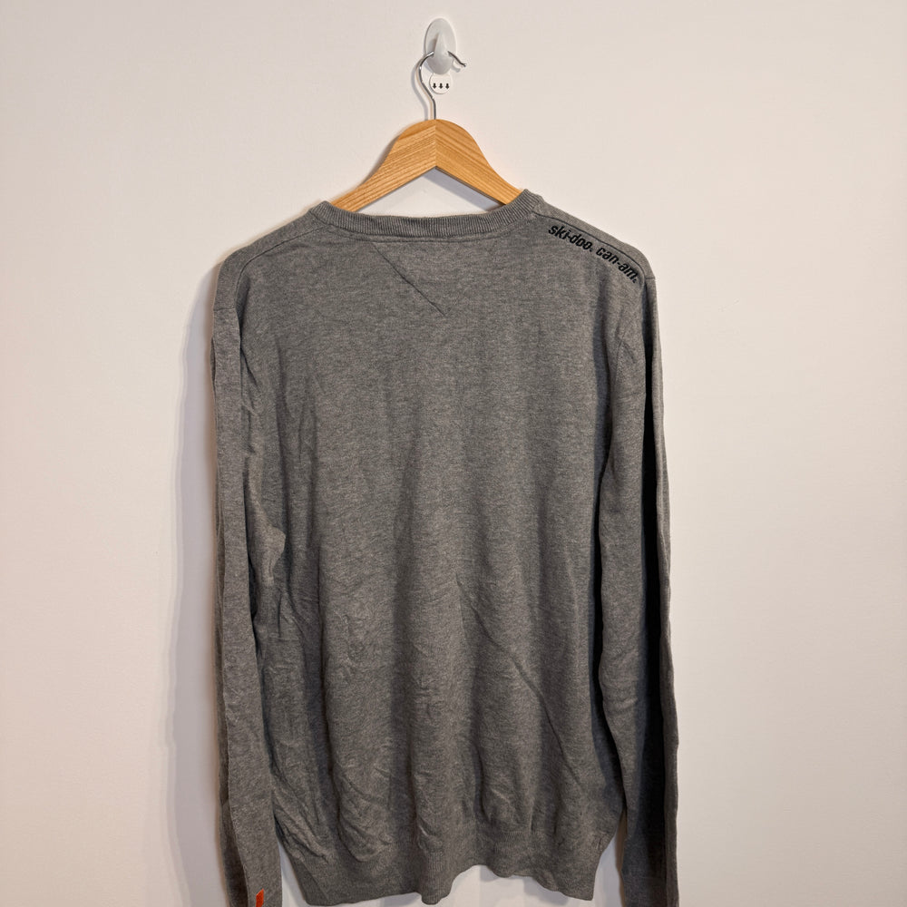 This Tommy Hilfiger Ski Doo Collaboration V-Neck Jumper combines sporty flair with refined knitwear design. The sleek grey tone and subtle detailing give it a contemporary edge, perfect for casual layering or a relaxed smart look. A standout piece that merges Tommy Hilfiger’s timeless style with Ski Doo’s adventurous spirit.