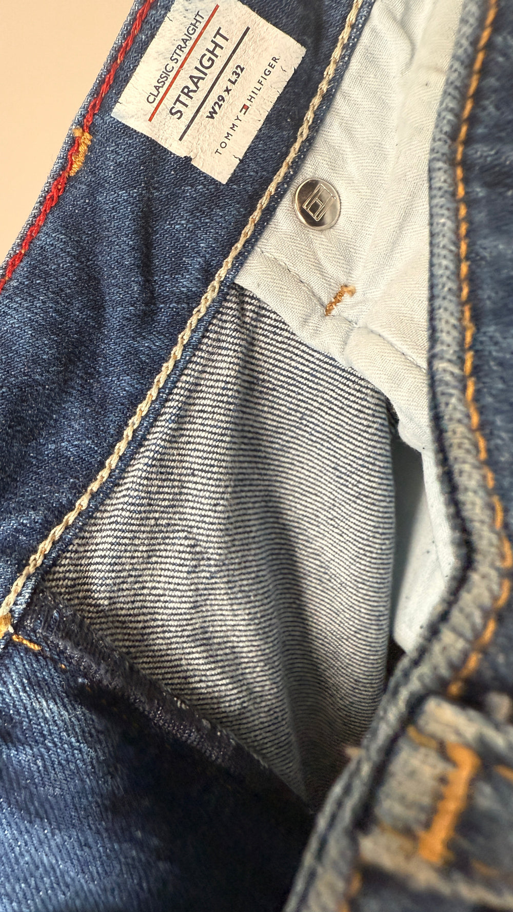 Classic and effortlessly timeless, these Tommy Hilfiger Straight Fit Blue Jeans offer a relaxed yet flattering silhouette. The soft denim and subtle fading give them a vintage-inspired charm while maintaining everyday comfort. Perfect for pairing with tees, blouses, or knitwear, they’re a versatile piece that embodies laid-back Tommy Hilfiger style.